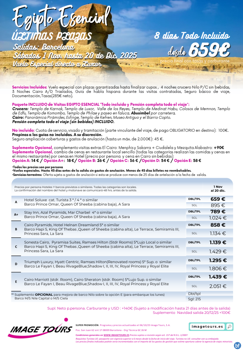 Egipto Esencial ¡Últimas Plazas 1 de nov al 20 de diciembre! desde 659€