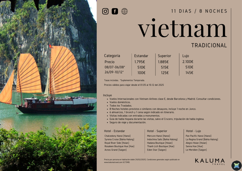 Vietnam Tradicional 11 Días / 8 Noches - Salidas hasta Junio desde 1.855 €