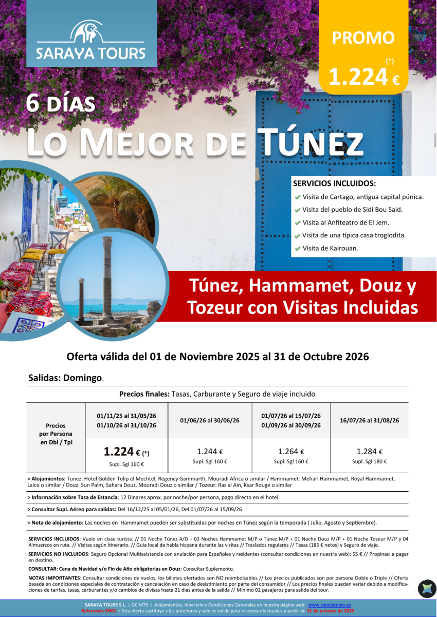 Lo mejor de Túnez 6 días : Circuito con visitas incluidas hasta Octubre 26